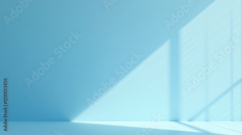 Serene Light Blue Room with Soft Sunlight Casts Windowpane Shadows on Wall and Floor