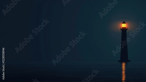 Serene Lighthouse at Night Illuminating Calm Waters and Fog