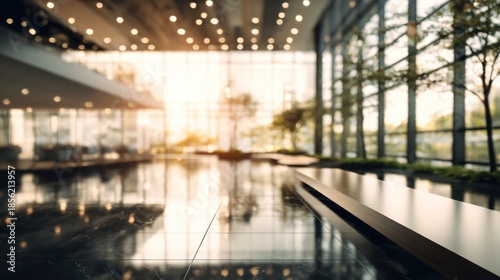 Serene Lobby with Natural Light Reflecting on Polished Marble Flooring