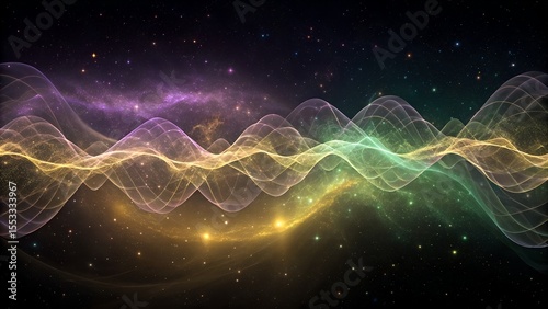 Serene meditative background with abstract cosmic waves and glowing stardust