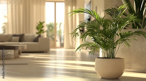 Serene Minimalist Living Room with Lush Potted Plant