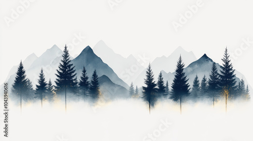 Serene misty mountains and pine forest landscape illustration