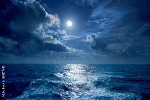 Serene moonlit night over the calm ocean scene