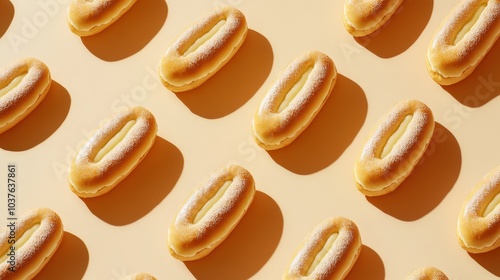 Serene Morning Scene: Freshly Baked Eclairs in Soft Light with Minimalist Aesthetic and Humorous Twist