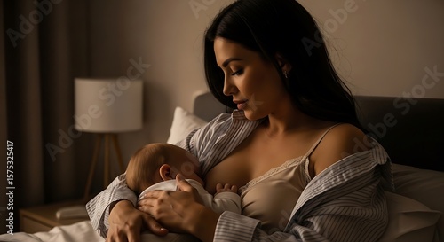 Serene Motherhood: A Tender Moment of Breastfeeding in Soft Light