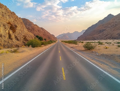 Serene Open Road Through Desert Landscape at Twilight Hours