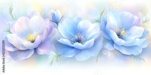 Serene Pastel Blue Flowers Soft Floral Painting Delicate Petals Artistic Botanical Illustration