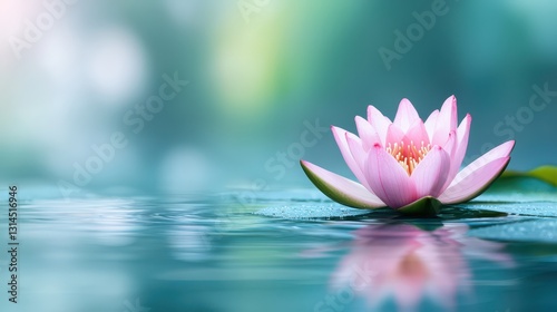 Serene pink lotus flower floating on tranquil water surface