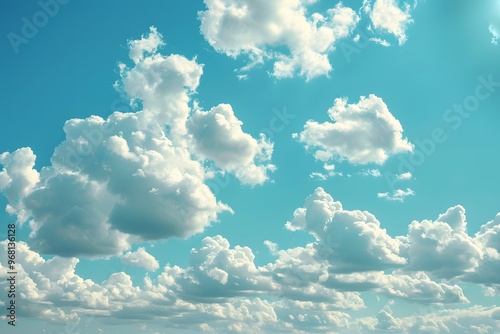 Serene Sky Filled with Fluffy White Clouds Against a Bright Blue Background