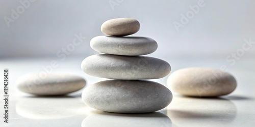 Serene Stack of Smooth Stones on Reflective Surface for Wellness Concept