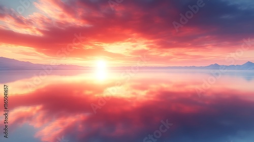 Serene Sunset Over Calm Mountain Lake Waters