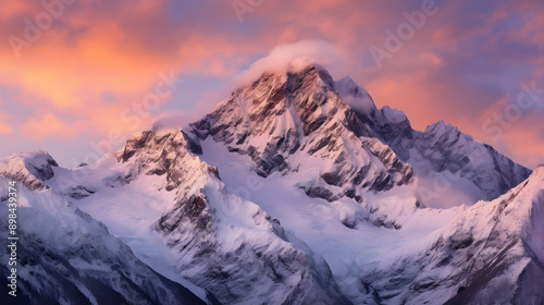 Serene Sunset over Snow-Covered Peaks: A Majestic Display of Nature's Splendor