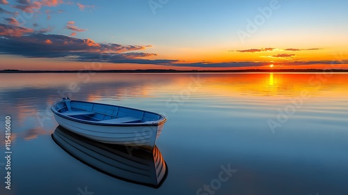 Serene sunset reflection tranquil lake nature photography calm waters eye-level view peaceful atmosphere