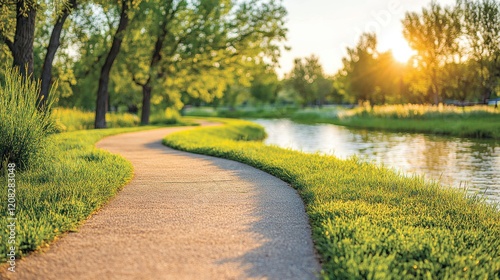 Serene Sunset Stroll: A Picturesque Pathway by the River