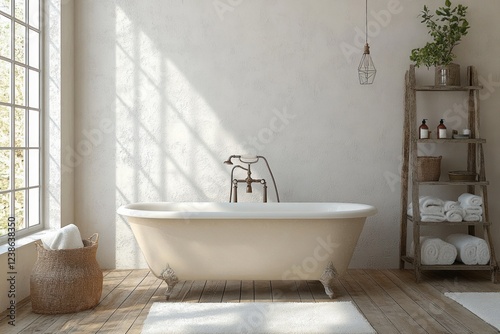 Serene Vintage Bathroom with Freestanding Bathtub and Rustic Decor