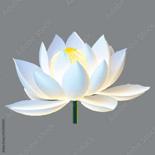 Serene White Lotus Flower Blossom Botanical Illustration Perfect for Wellness Designs and Spiritual Projects