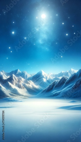 Serene Winter Night Landscape with Starry Sky, Nature Background Concept