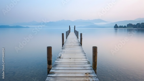 Serene Wooden Pier Extending Into Tranquil Lake Reflecting Peaceful Surroundings