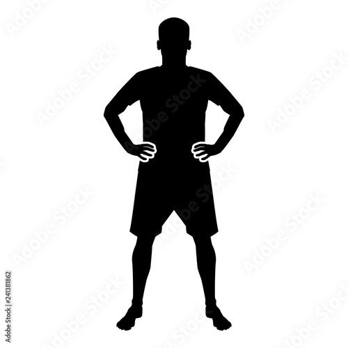 Serious man holding hands on belt confidence concept silhouette manager business icon black color vector illustration flat style image