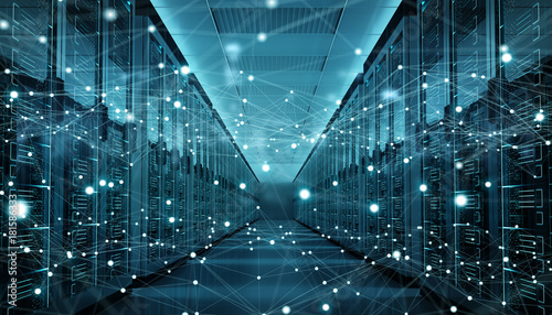 Server room center exchanging cyber datas 3D rendering