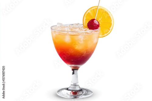 Serving Tequila Sunrise Cocktail with Orange Slice and Cherry Garnish