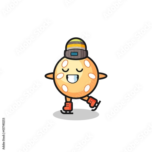 sesame ball cartoon as an ice skating player doing perform