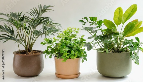 Set 3 of Green plants in potted for interior decoration isolated on white background