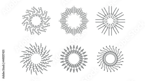 Set Abstract Collection Starburst Sunburst Sunset Black Line Doodle Design Elements Bursting Rays Sunrise Light Radiant Spark Vector Design Style