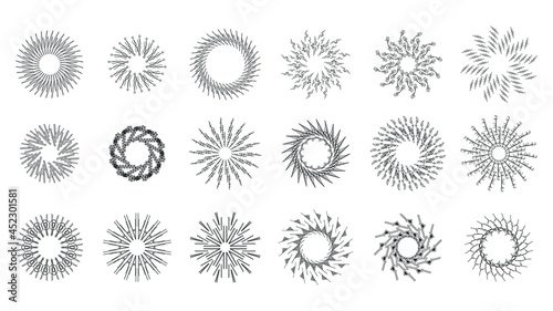 Set Abstract Collection Starburst Sunburst Sunset Black Line Doodle Design Elements Bursting Rays Sunrise Light Radiant Spark Vector Design Style