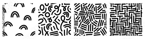 Set Aesthetic Contemporary printable seamless pattern with abstract line, dot, shape brush stroke in black and white colors. Boho background in minimalist style vector Illustration for wallpaper