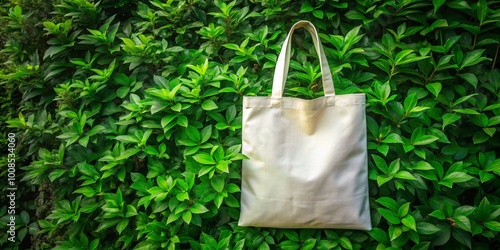 Set against vibrant green leaves, a plain white cotton bag embodies eco-friendly and sustainable fashion. Ideal for