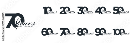set anniversary 10 to 100 year logo designs. abstract number, icon, vector illustration