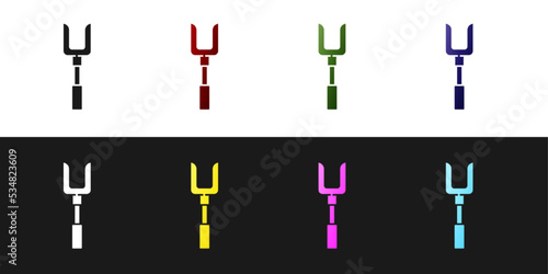 Set Barbecue fork icon isolated on black and white background. BBQ fork sign. Barbecue and grill tool. Vector