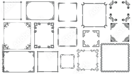 Set Black Simple Line Frame Collection Doodle Square, Floral Frame Elements, Vector Design Style, Sketch, Isolated Illustration For Banner, Invitation, Social Media, Blog
