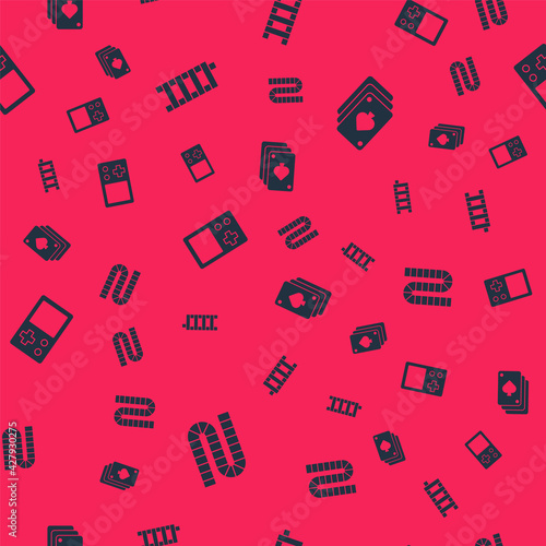 Set Board game, Mahjong pieces, Tetris and Playing cards on seamless pattern. Vector