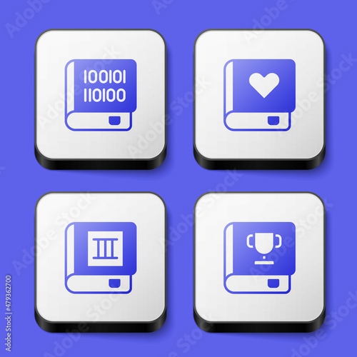 Set Books about programming, Romance book, and icon. White square button. Vector
