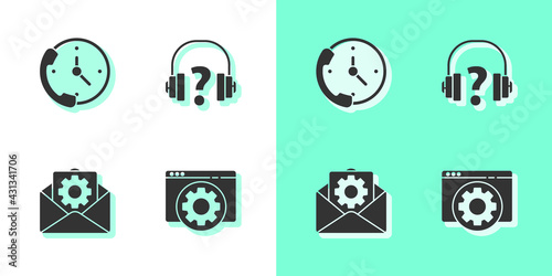 Set Browser setting, Telephone 24 hours support, Envelope and Headphones icon. Vector