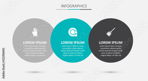 Set Dishwashing bottle and plate, Rubber gloves and Dustpan. Business infographic template. Vector