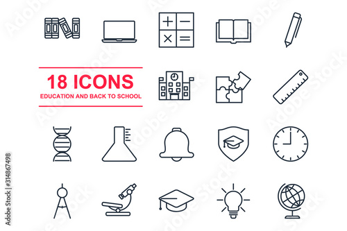 Set Education icon template color editable. back to school pack symbol vector sign isolated on white background illustration for graphic and web design.