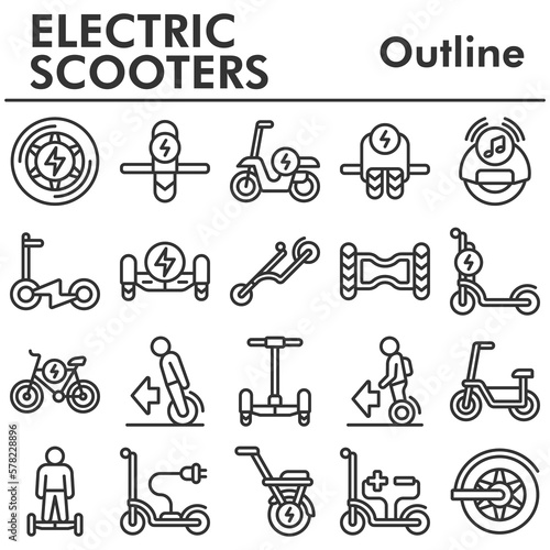 Set, electric scooters icons set - icon, illustration on white background, outline style