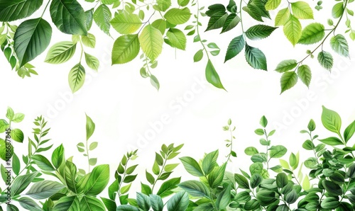 set fresh green leaf wallpaper template plain background abstract plant leaves Generate AI