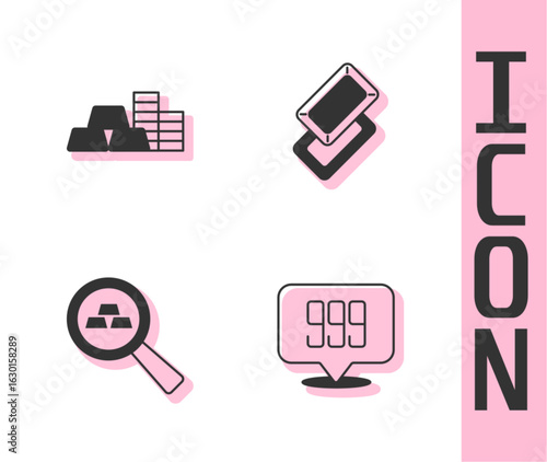 Set Gold bars 24k, coin with gold, and icon. Vector
