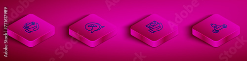 Set Isometric line Car insurance, Umbrella, Money with shield and icon. Vector