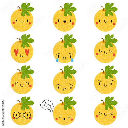 Set Kawaii Cartoon Melon. Vector Illustration EPS.