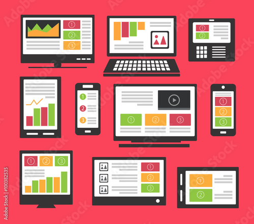 Set laptop and notebook tablet laptop in a flat style