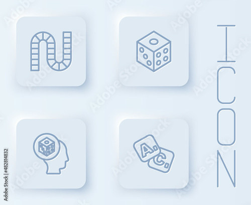 Set line Board game, Game dice, and Bingo. White square button. Vector
