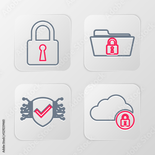 Set line Cloud computing lock, Cyber security, Folder and and Lock icon. Vector