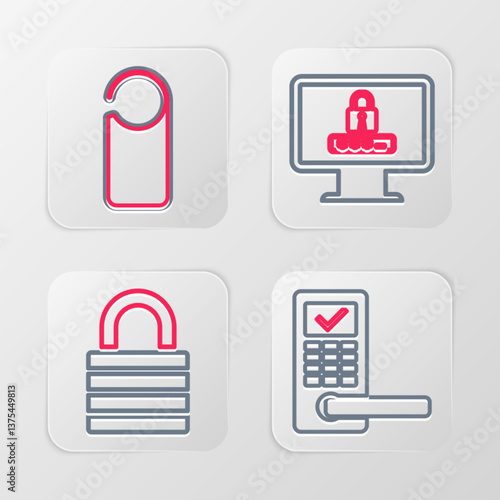 Set line Digital door lock with wireless, Lock, Monitor password and Please not disturb icon. Vector