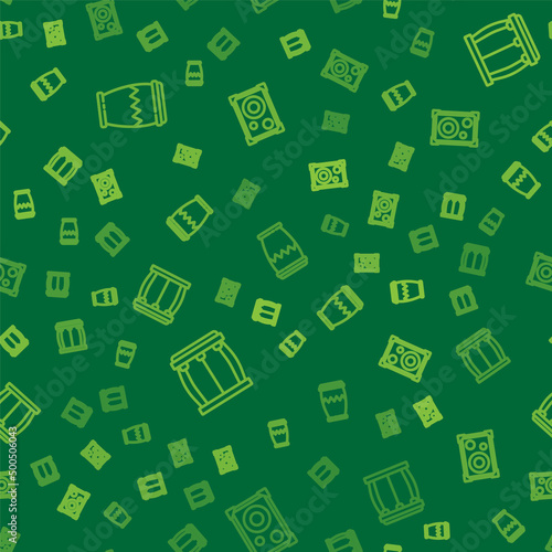 Set line Drum, and Stereo speaker on seamless pattern. Vector