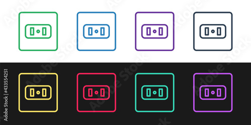 Set line Electrical outlet icon isolated on black and white background. Power socket. Rosette symbol. Vector